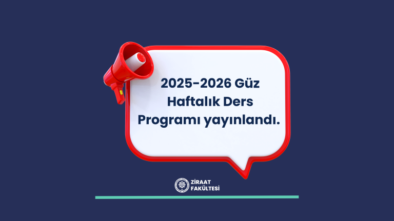 Bölümlerin 2025-2026 Güz Haftalık Ders programlarına aşağıdan ulaşabilirsiniz. Bahçe Bitkileri Bitki Koruma Biyosistem Mühendisliği Tarla Bitkileri Tarım Ekonomisi Su Ürünleri Mühendisliği Toprak Bilimi ve Bitki Besleme Zootekni