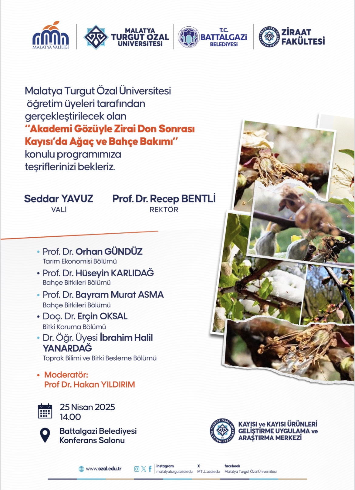 Fakültemiz öğretim üyeleri tarafından “Akademi gözüyle zirai don sonrası kayısı’da ağaç ve bahçe bakımı” konulu program gerçekleştirilecektir.