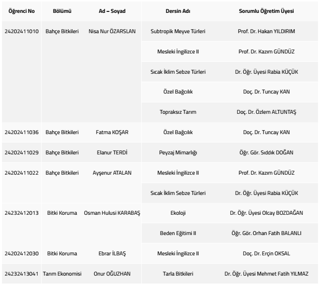 Mazeret Sınavına Girecek Öğrenciler