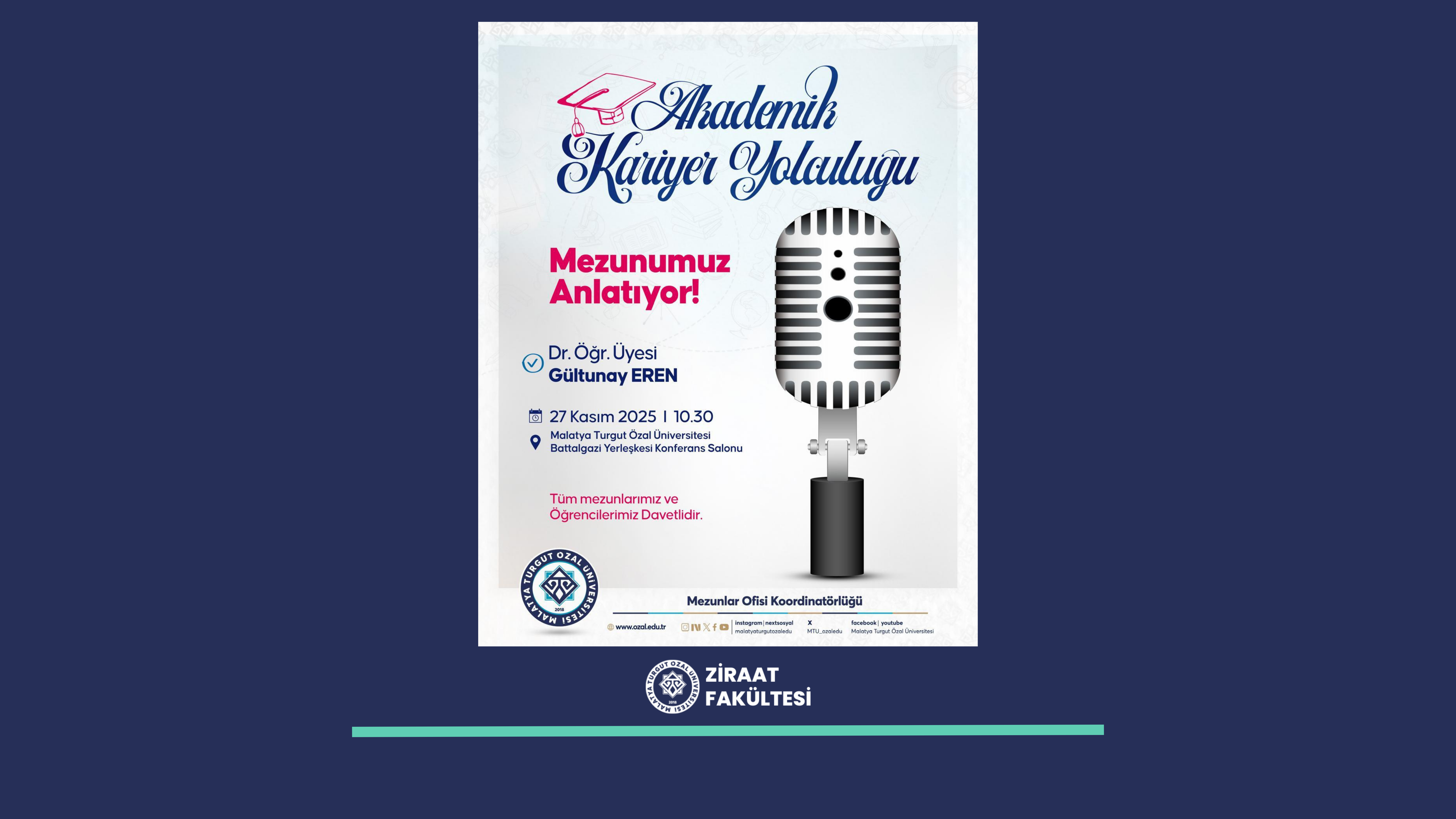 Etkinlik, 27 Kasım 2025 Perşembe günü saat 10.30’da Malatya Turgut Özal Üniversitesi Battalgazi Yerleşkesi Konferans Salonunda gerçekleştirilecektir.