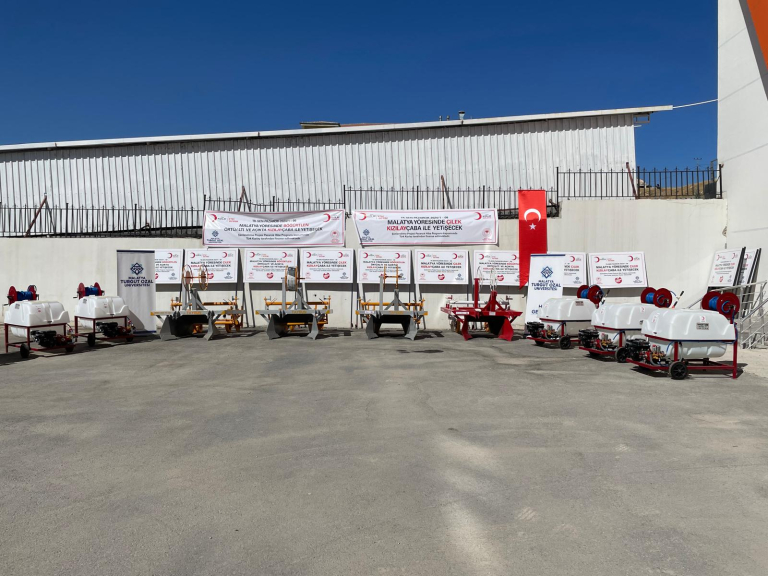 Fakülte Dekanımız Prof. Dr. Hakan YILDIRIM ve Dekan Yardımcımız Dr. Öğr. Üyesi İbrahim Halil YANARDAĞ, Türk Kızılay tarafından desteklenen, Kızılay Malatya il Merkez Başkanlığımız tarafından yürütülen, Üniversitemiz ve İl Tarım ve Orman Müdürlüğümüzün paydaşı olduğu ve projelerin danışmanlığını Bahçe Bitkileri Bölüm Öğretim Üyesi Prof. Dr. Kazim GÜNDÜZ’ün yürüttüğü ‘Malatya Yöresinde Çilek KIZILAYÇABA ile Yetişecek’ ve ‘Malatya Yöresinde Böğürtlen Örtüaltı ve Açıkta KIZILAYÇABA İle Yetişecek’ başlıklı projeler kapsamında hibe edilecek makine ve ekipman dağıtım törenine katılım sağladılar. Dağıtımı gerçekleşen çilek sedde makinaları ve pülverizatörlerin yöremiz çiftçilerine hayırlı olmasını diliyoruz. TÜRK KIZILAY’ına çiftçilerimize sağlamış olduğu desteklerden dolayı teşekkür ediyoruz.