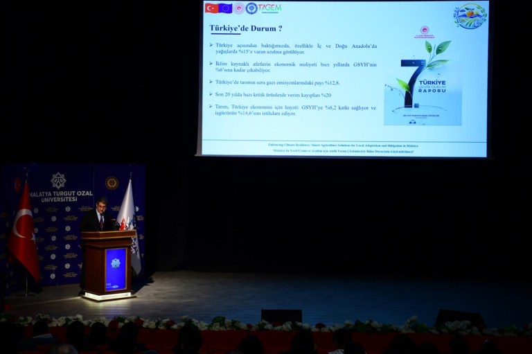 Akıllı Tarım ve İklim Direnci İçin AB Projesi Tanıtıldı Etkinlikte, Avrupa Birliği tarafından desteklenen “Malatya’da Yerel Uyum ve Azaltım İçin Akıllı Tarım Çözümleriyle İklim Direncinin Güçlendirilmesi” projesinin tanıtımı yapıldı. Proje ile iklim değişikliğinin tarımsal üretim üzerindeki olumsuz etkilerinin azaltılması, su ve enerji verimliliğinin artırılması hedeflenmektedir.